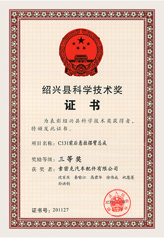 公司已先后通過IATF16949質(zhì)量管理體系認(rèn)證、ISO/14001環(huán)境管理體系認(rèn)證和OHSAS18001職業(yè)健康安全管理體系認(rèn)證。是“國(guó)家高新技術(shù)企業(yè)”“行業(yè)龍頭企業(yè)”和“全國(guó)百家優(yōu)秀汽車零部件供應(yīng)商”。